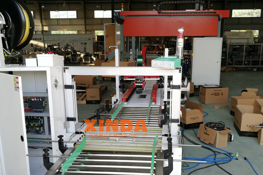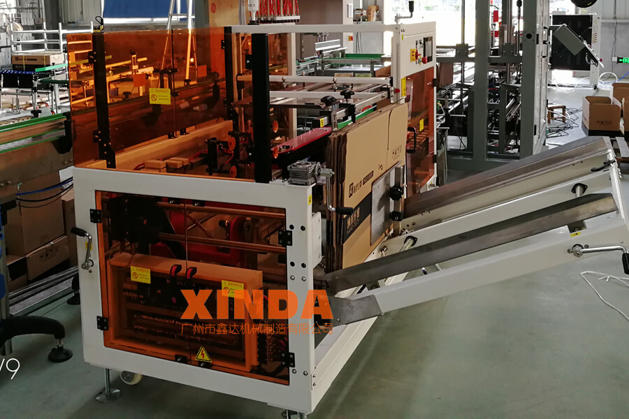 此款封箱設(shè)備時實現(xiàn)紙箱頂部自動封箱功能,自動實現(xiàn)折蓋、膠帶封箱,尺寸范圍可以調(diào)節(jié),每小時封箱數(shù)量可以達到400-600箱,是取代人工封箱的優(yōu)秀替代產(chǎn)品;封箱效果統(tǒng)一、標(biāo)準(zhǔn)美觀;