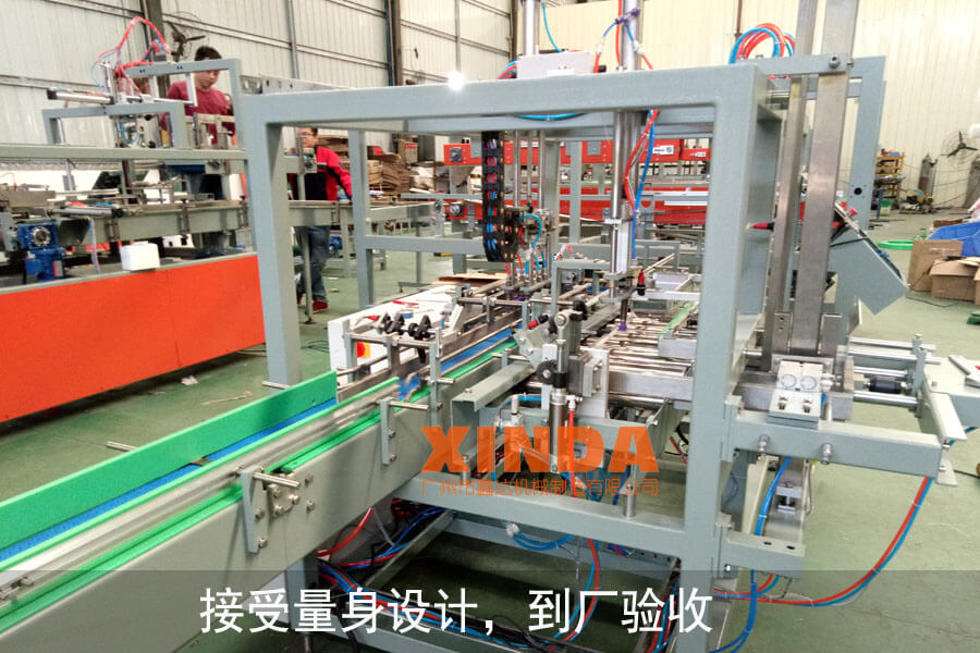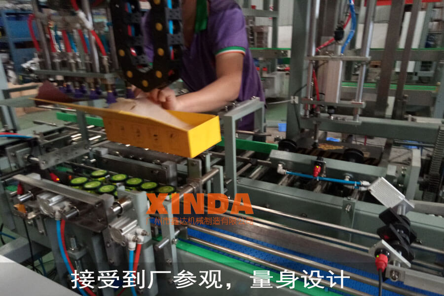 在中國,茶葉文化非常濃郁,平時生活里面離不開茶葉,比如和一些朋友聚聚餐,喝喝茶;或和家人喝茶談心等;市場里面對于茶葉的消耗特別大,因而對于茶葉的包裝量也非常巨大;在國內(nèi),大部分茶葉的包裝還是采用人工手工打包,導(dǎo)致效率低下,實現(xiàn)不了規(guī)模化生產(chǎn);而茶葉的成本高,讓茶葉實惠與群體還是有點距離;并且隨著包裝要求的特色,品種多樣化,讓產(chǎn)業(yè)加工企業(yè)跟進社會潮流難以為繼,茶葉機械化生產(chǎn)勢在必行,各企業(yè)紛紛引進自動化生產(chǎn)線。針對以上情況,鑫達機械專門為國內(nèi)某一茶葉生產(chǎn)企業(yè)量身設(shè)計一款圓罐茶自動裝箱機,也叫茶葉自動裝盒機,可以將圓罐裝的茶葉,自動進入包裝盒里面,無須人工;可以和前面茶葉流水線搭配,實現(xiàn)茶葉包裝自動化生產(chǎn)線。下圖示為目前我司正在生產(chǎn)茶葉裝箱機