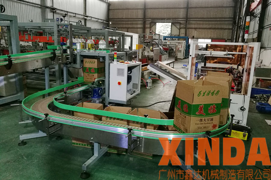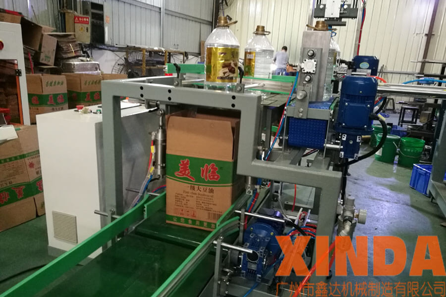 此款大豆油生產(chǎn)線采用的裝箱設(shè)備為跌落式裝箱機,通過產(chǎn)品自身重力,自由落體進(jìn)入已經(jīng)成型的紙箱里面,可以一次性裝4瓶大豆油;此款設(shè)備也可以成為落差式裝箱機,同樣適用大瓶裝水、瓶裝油、瓶裝豆奶自動裝箱機;是中小規(guī)模生產(chǎn)企業(yè)實現(xiàn)自動化包裝的優(yōu)秀選擇;整機采用可調(diào)式設(shè)計,可以滿足客戶多規(guī)格產(chǎn)品裝箱,只要在更換品種時,按操作說明調(diào)節(jié)相應(yīng)位置即可,一機多用,靈活性強,尤其適合多品種產(chǎn)品廠家使用。