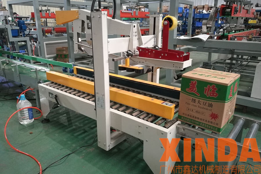 在裝箱完畢后,采用自動折蓋封箱機配套,此款封箱機是可以自動進(jìn)行紙箱商業(yè)蓋自動折頁同時封膠帶功能,封箱密合,美觀、是不可多得的助人封箱機械,大大的降低封箱工位的勞動力浪費耗材現(xiàn)象及強度。